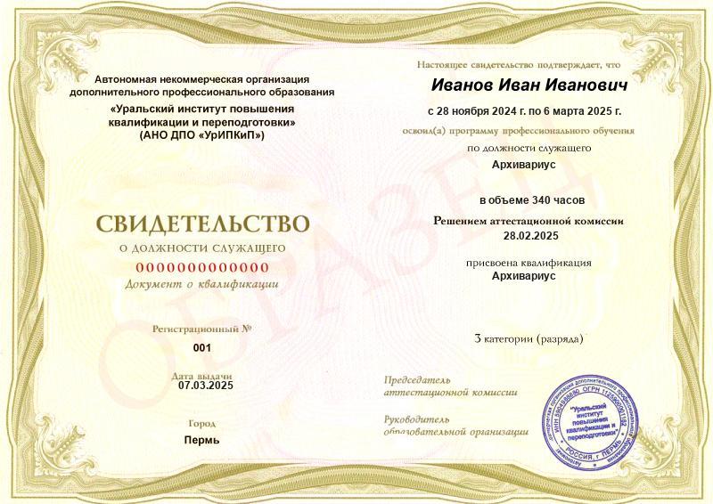 Заполненные образцы выдаваемых документов есть в описании учебных курсов и на странице «Лицензия. Документы», а также на главной странице официального сайта АНО ДПО «УрИПКиП».