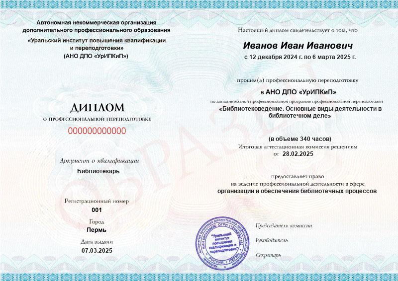 Да, дипломы и удостоверения оформляются в соответствии с действующим законодательством РФ. Документы печатаются на специальных бланках, заверяются печатью АНО ДПО «УрИПКиП».
