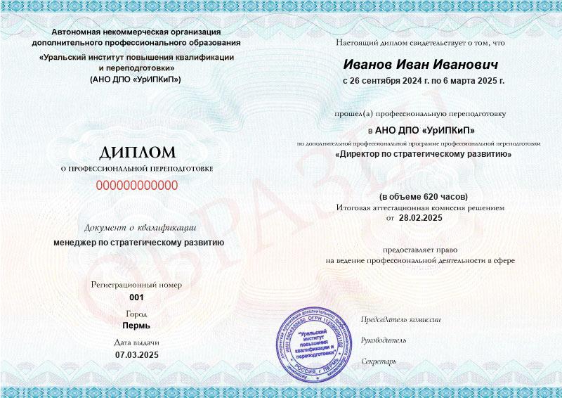 • Официальный диплом о профпереподготовке