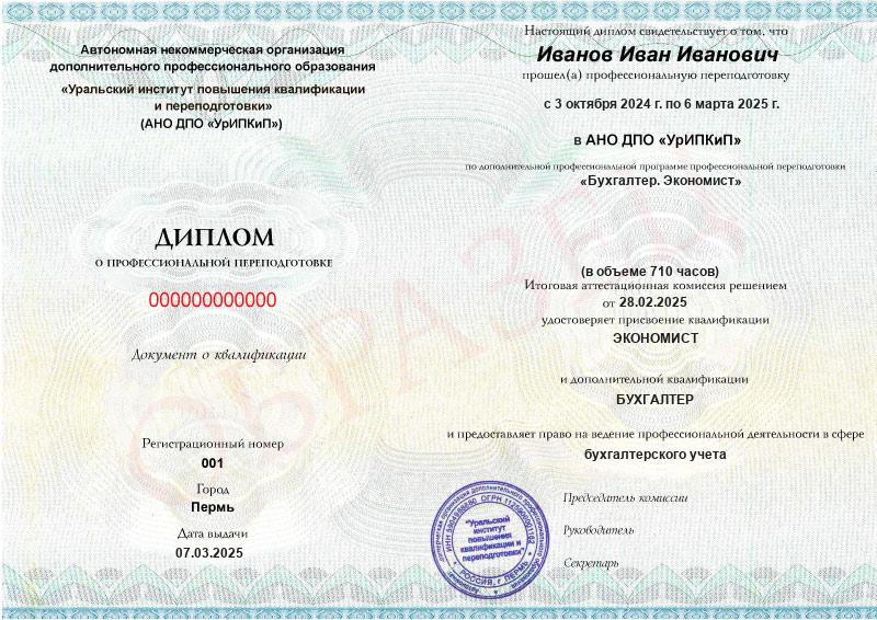 На курсе вы получите диплом о профессиональной переподготовке с присвоением сразу двух квалификаций: бухгалтер и экономист.