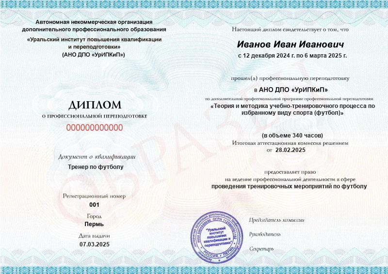 Диплом профессиональной переподготовки позволяет устроится на работу детским тренером по футболу в различные государственные (ДЮСШ и т. п.) и коммерческие спортивные организации (профессиональные футбольные клубы и т. п.).
