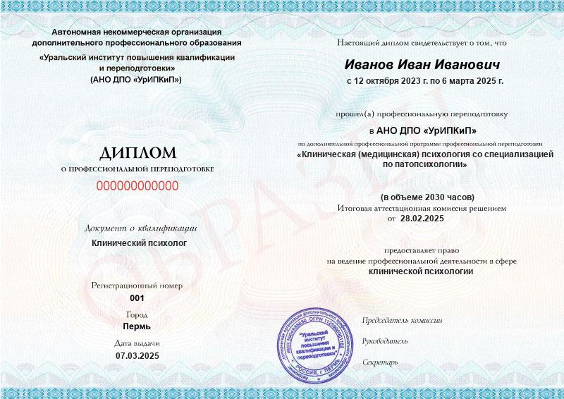 - 2 квалификации: Клинический психолог + Патопсихолог