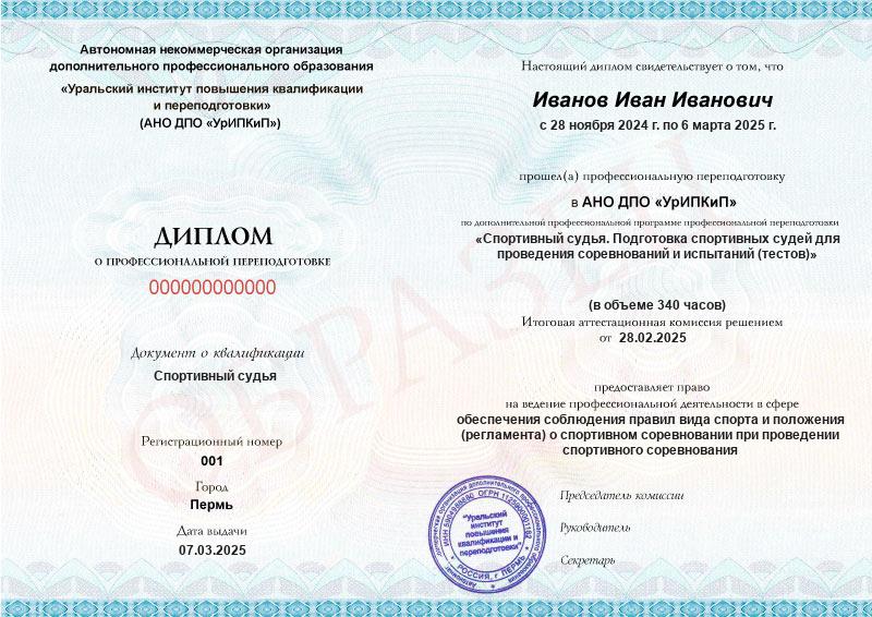 - Образец диплома о профессиональной переподготовке.