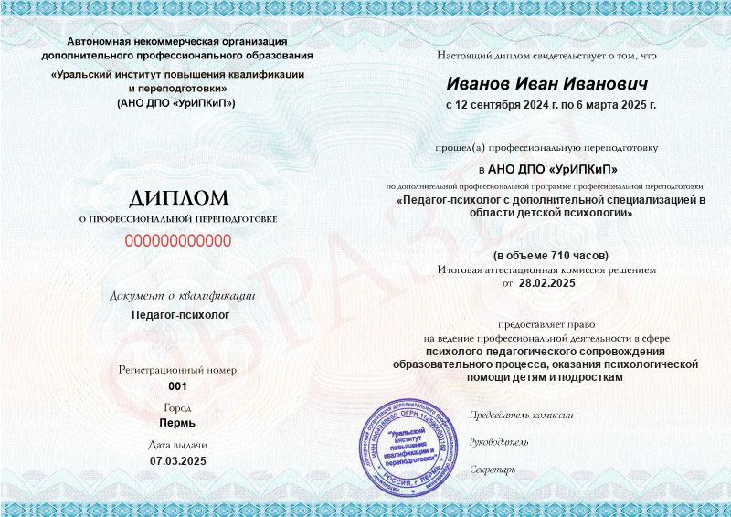 Курс обучения Педагог-психолог с дополнительной специализацией в области детской психологии (710ч)
