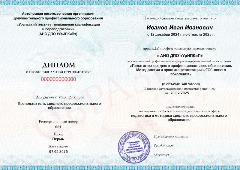 Да, дипломы и удостоверения оформляются в соответствии с действующим законодательством РФ. Документы печатаются на специальных бланках, заверяются печатью АНО ДПО «УрИПКиП».