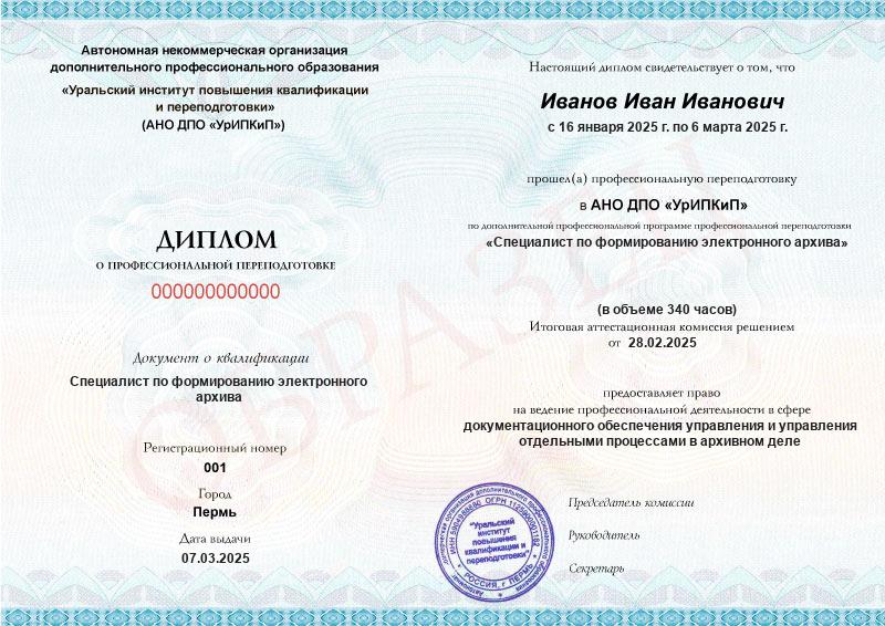 Курс обучения Специалист по формированию электронного архива (340ч)