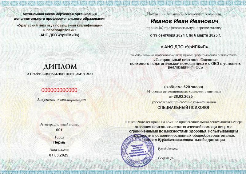 Да, дипломы и удостоверения оформляются в соответствии с действующим законодательством РФ. Документы печатаются на специальных бланках, заверяются печатью АНО ДПО «УрИПКиП».