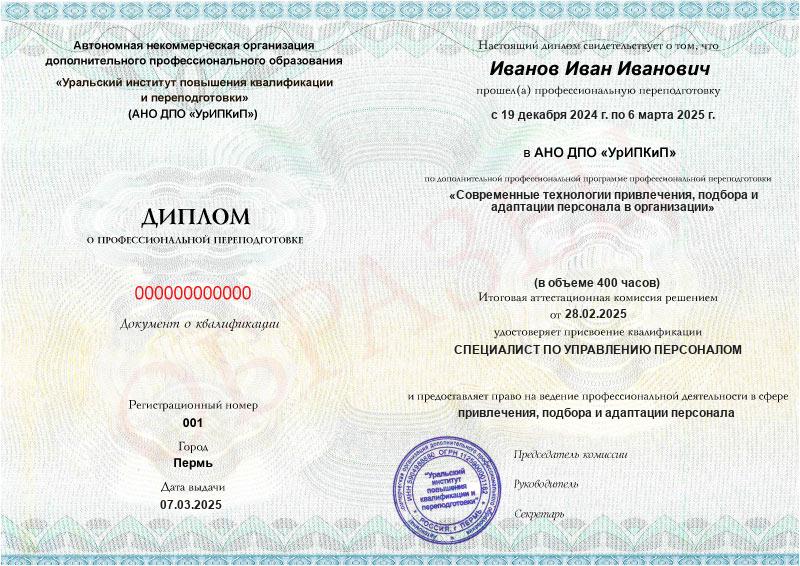 Обзор программы профессиональной переподготовки «Современные технологии привлечения, подбора и адаптации персонала в организации» с присвоением квалификации «Специалист по управлению персоналом»