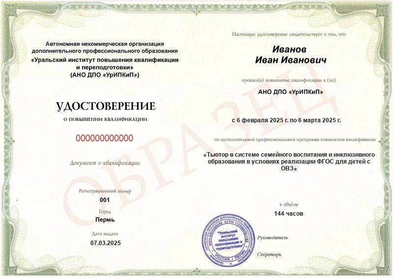 - Повышали квалификацию в АНО ДПО «УрИПКиП» – вам будет выдано удостоверение.