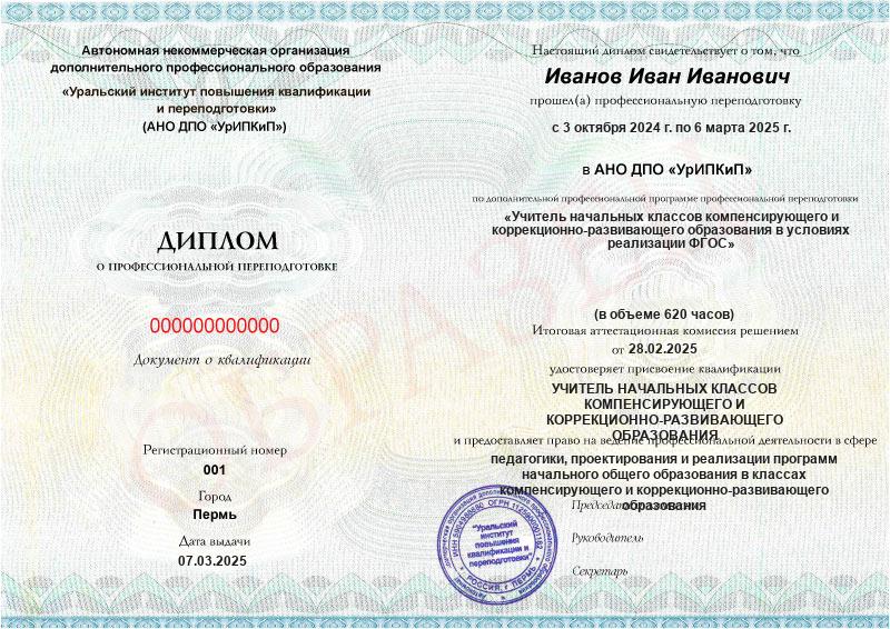 - Образец диплома о профессиональной переподготовке.