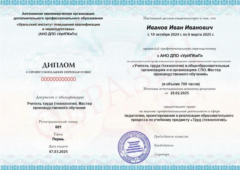 Программа профпереподготовки дает возможность получить квалификацию учителя труда (технологии) для работы в школах и мастера производственного обучения в организациях СПО.